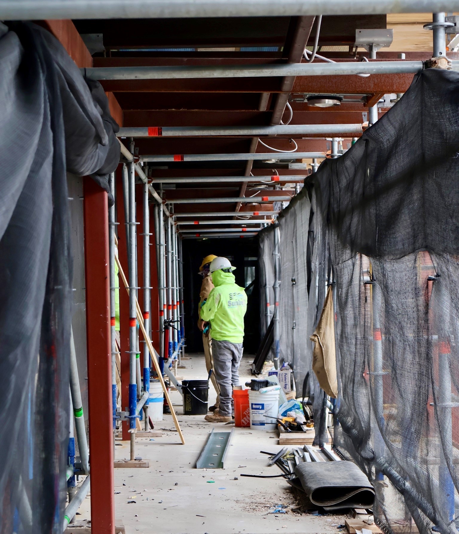 Demo all wall coverings down to steel stud framing.