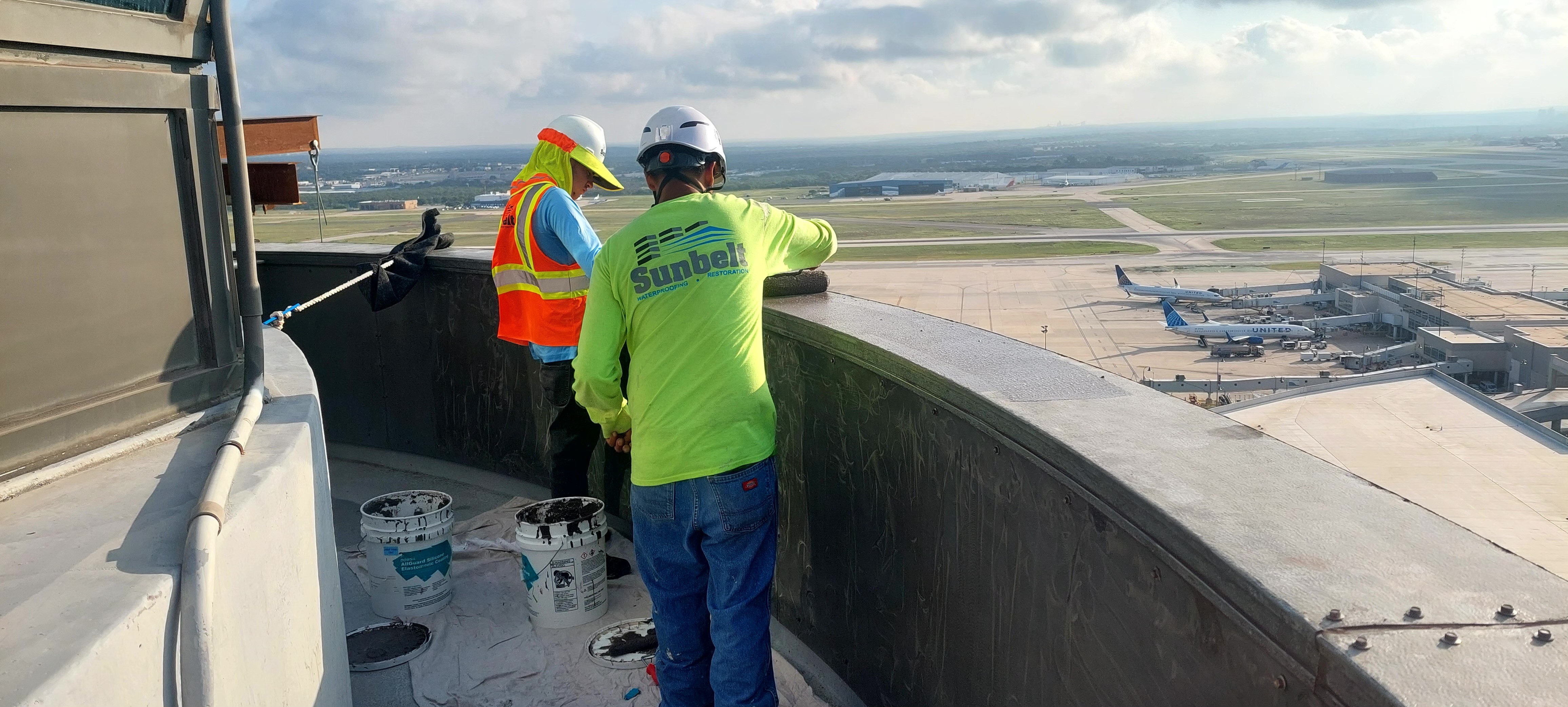 The San Antonio Airport project was a restoration and waterproofing effort aimed at maintaining the building’s exterior and enhancing its protection. The project included the removal and replacement of building sealants to ensure all joints and seams were properly sealed, preventing water infiltration and improving energy efficiency. Additionally, the building was pressure washed and coated with a durable color silicone coating, which not only refreshed the building’s appearance but also provided a long-lasting protective layer against the elements. These improvements successfully enhanced both the aesthetic and functional performance of the airport’s exterior.