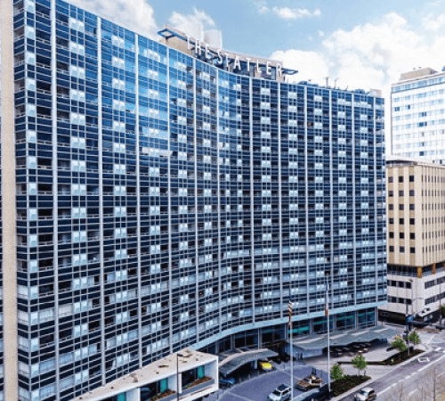 The Statler Hotel and Old Dallas Central Library is a renovation/expansion of the historic buildings. After nearly three decades, The Statler was the first major hotel built in Dallas, completed in 1956. The hotel was the first of its kind to use updated construction techniques. The Statler played a role in establishing Dallas as a business mecca. The Y-shaped building contains 710 rooms and a ballroom; capable of hosting 2,200 people. This restoration project consisted of repairing historic masonry. Replacing broken or non-code compliant glass throughout the building. Also, we were tasked with wet sealing the existing curtain wall system, restoring the curtain wall system and porcelain panels, and installing a new davit and tie-back system for exterior façade access. The construction plan was to restore the appearance and maintain the building for many years in the future.